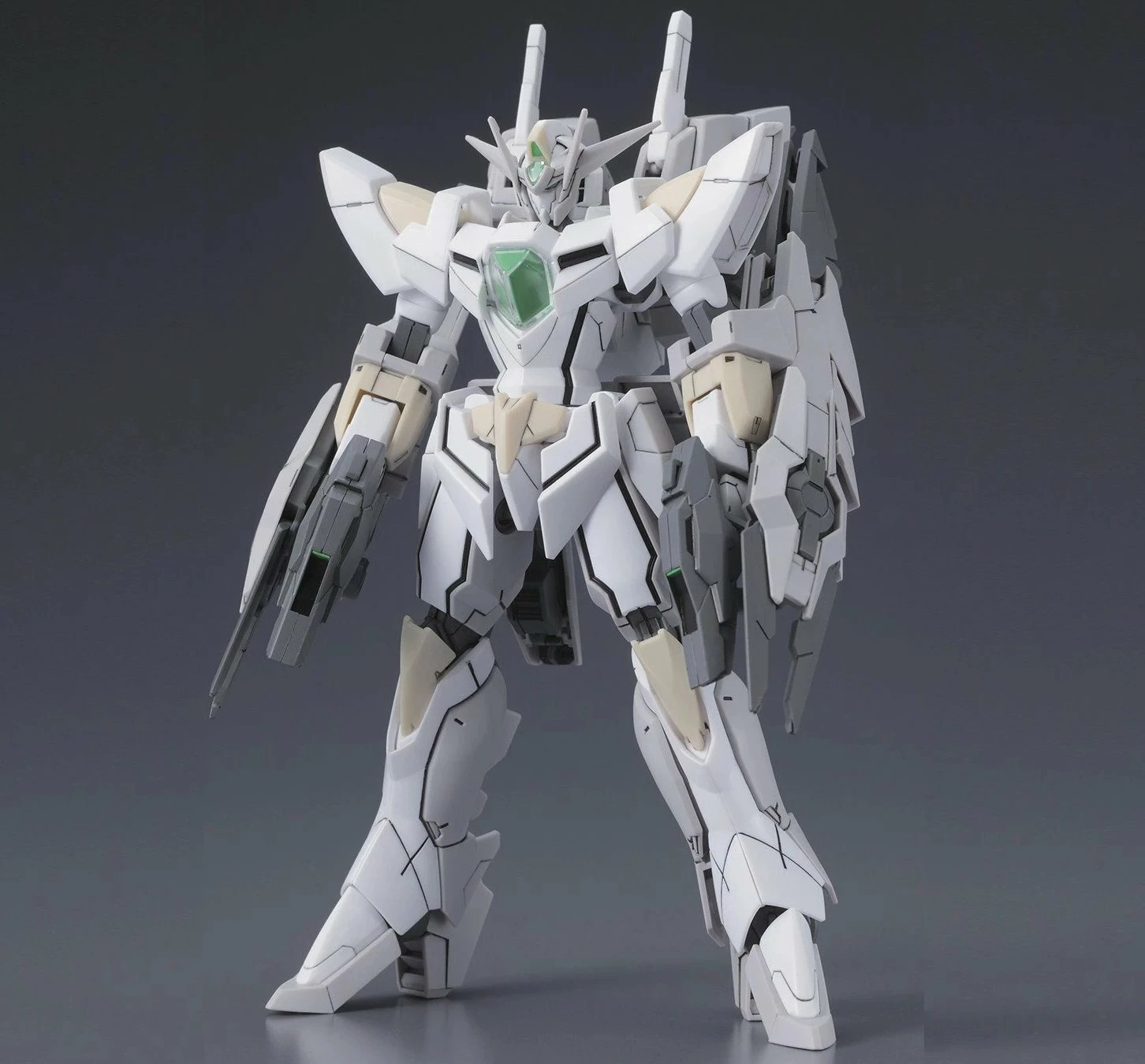 The Reversible Gundam as seen in the Gundam Build Fighters Battlogue video shorts is based off the Reborns Gundam from Gundam 00. Features a transforming gimmick to recreate its creature like “Tank Mode.” Includes GN Beam Pistols, GN Dragon Claws which can move independently, and 2 GN Beam Sabers.