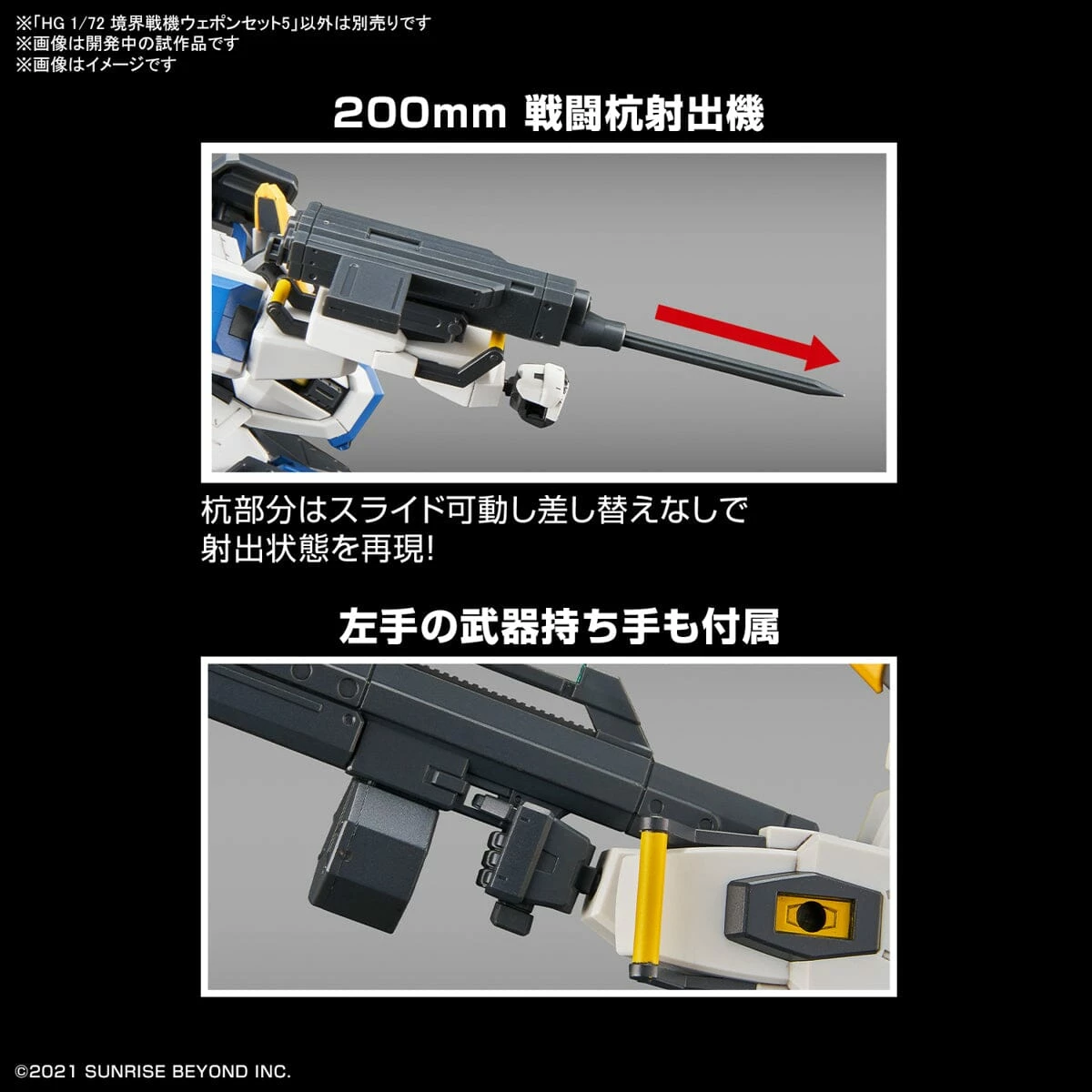 A weapon set that aggregates the armaments of the Kyoukai Senki 1/72 series and allows you to create your own original configurations. Includes a set of armaments and armor parts: 180mm back0suspended automatic howitzer, 200mm combat pile ejector, and super heat shake type combat curved sword.