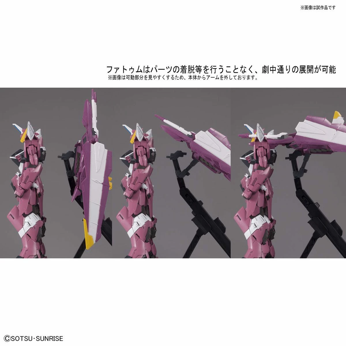 From the TV series “Gundam Seed”, the Justice Gundam has finally been made into a Master Grade kit! Justice Gundam’s multipurpose sublifter with movable beam cannons and machine cannons, the Fatum-00, can be configured into different flight positions on back and also as a flying mount for it to stand on. Pair with MG Freedom 2.0 and MG Providence to complete ZAFT’s Gundam Seed lineup! Includes two beam boomerangs that be stored in shoulders, two beam saber, beam rifle, and Laminate anti beam shield.