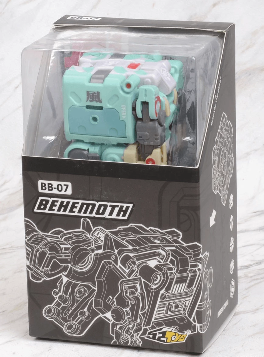 BeastBOX is an original series of robotic style creatures that transform into cubes. The BeastBOX BB-07 Behemoth has a creature mode of a hippopotamus.