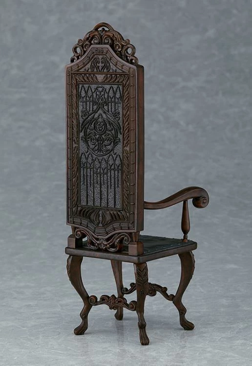 The set comes with her weapons Rakuyo and Evelyn. Just like its in-game counterpart, Rakuyo can be separated into two swords: a saber and a dagger. This version also comes with a chair, scabbard, blood blade effect parts, and lower half parts to display Maria sitting down to recreate the game’s box art.