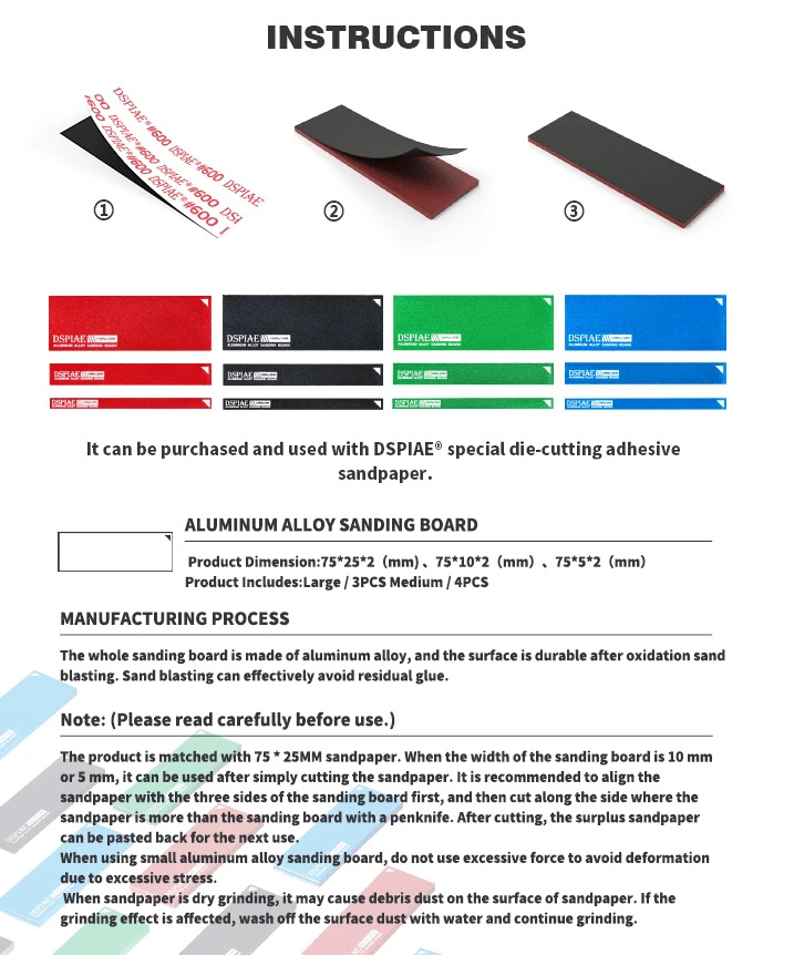 DSPIAE Aluminum Alloy Sanding Board Hobby Accessory