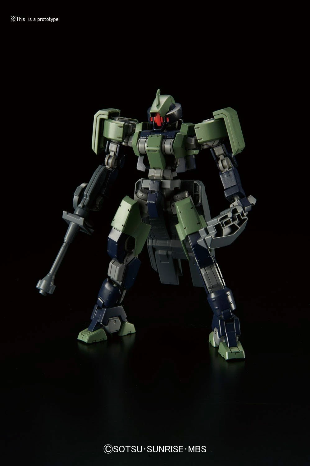 The predecessor to the Graze, the Geirail appears in season 2 of “Gundam Iron-Blooded Orphans.” Includes rifle, axe, and hover unit that can be attached to the back of the suit. Runner x4, Sticker x1.
