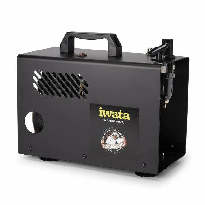 Iwata Power Jet Lite airbrush compressor is quiet, low maintenance and produces low to high output and working pressures of 1-50 PSI.