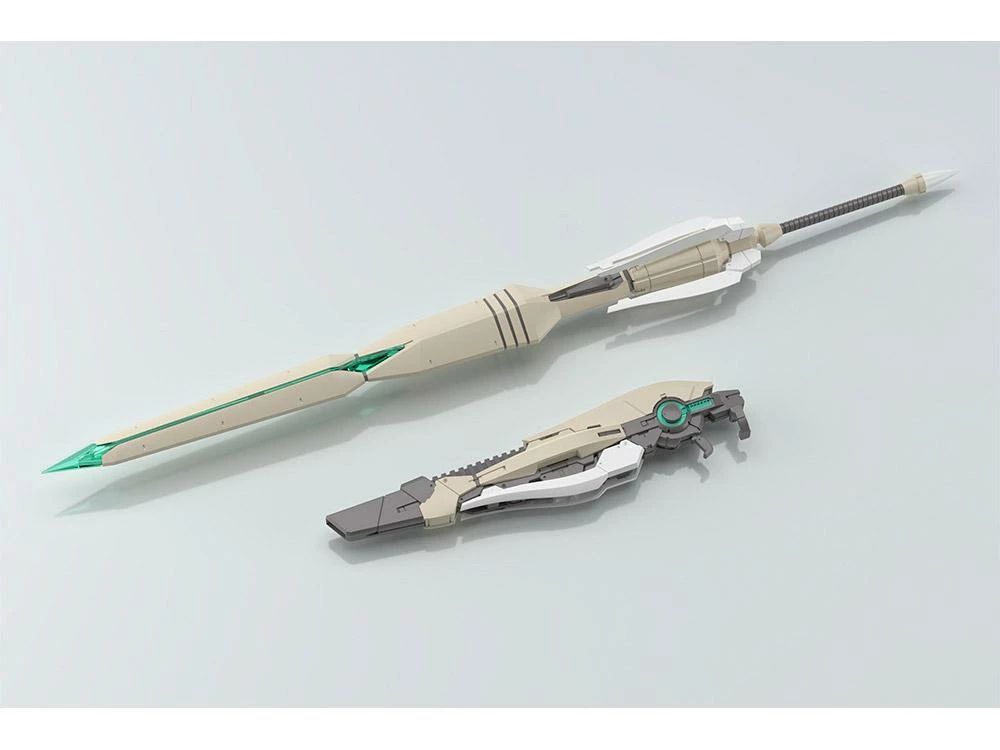 The Gear Unit Ver. Ganesha stands over 11 inches tall and features an EMP Power Arm expansion on parts of the upper body, as well as resculpted shoulder width and feet tip parts by Masaki Apsy that help refine the model’s balance of proportions. The model is equipped with several 3mm connection points, making it compatible with existing M.S.G., Frame Arms, Frame Arm Girls, and Hexa Geat weapons and armor.