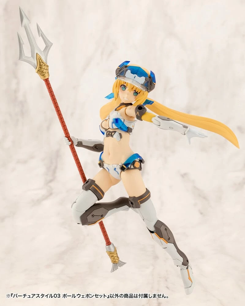 The third installment in the weapon series specially designed for character plastic model kits, VIRTUOUS STYLE, is here! This third installment is a set of polearms (long-handled weapons). The set includes three of the most prominent polearms, a halberd, spear, and trident. They are great, especially when equipped onto female character models and will completely upgrade any scene!