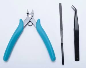 Set Come with Mr. hobby Basic Nippers, Decal Tweezers and Flat File