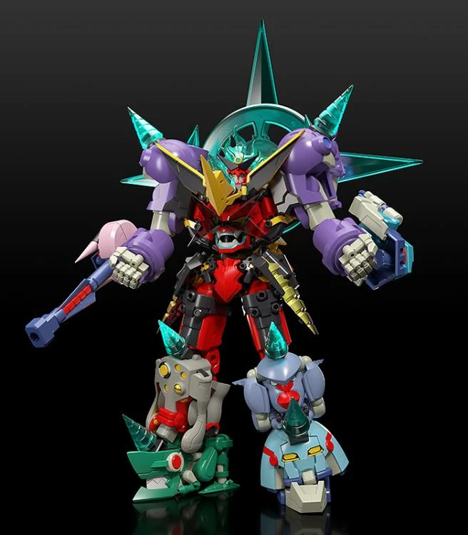 A total of nine mecha including Gurren Lagann and the other gunmen of Team Dai-Gurren combine into one (including Kiyalunga in weapon form)! When combined the action figure stands at approximately 9.4 inches in height.