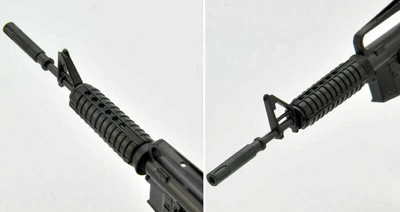 The XM177 series is a shortened version of the M16 assault rifle, which was adopted exclusively by the U.S. military in the 1960s. A long M16 was prepared for special forces, signallers and air crews in Vietnam’s jungle warfare. It features a muzzle device with a suppressor structure called a moderator, equipped to suppress the firing noise and flame that increase with a shorter barrel, and a telescopic aluminum stock similar to the current M4 series. The M653 is a shortened version of the same M16, but equipped with a 14.5-inch barrel which can carry the same bayonet used by the M16.