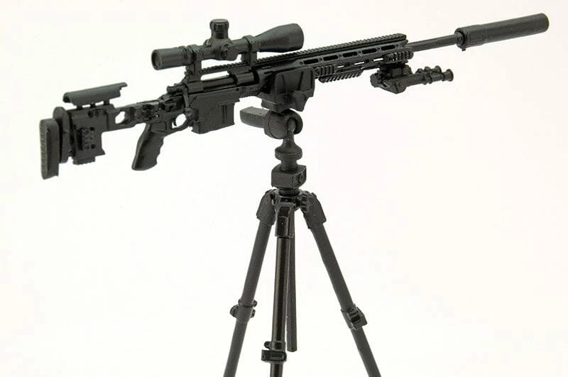Sniper missions are difficult. In various terrain and environments, they have to avoid detection by the enemy, stay on the alert for long periods of time so as to not miss a moment’s opportunity, and hit a very small target from up to a kilometer away. Snipers have various tools to help overcome these difficulties, and this set from Tomytec reproduces a tool set that any 1/12-scale sniper would find useful!