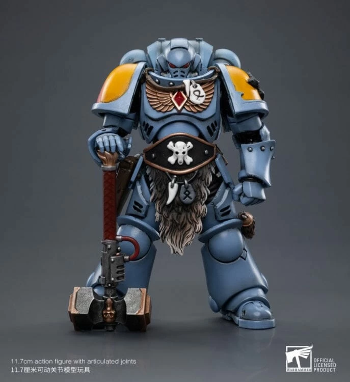 Joy Toy brings the Space Wolves Sigyrr Stoneshield from Warhammer 40k to life in 1/18 scale form! Savage and wild, Sigyrr Stoneshield leads his Claw Pack into battle in the pursuit of glory and bloodlust on the battlefield. This figure includes interchangeable hands and weapon accessories and stands between 4″ and 6″ tall.